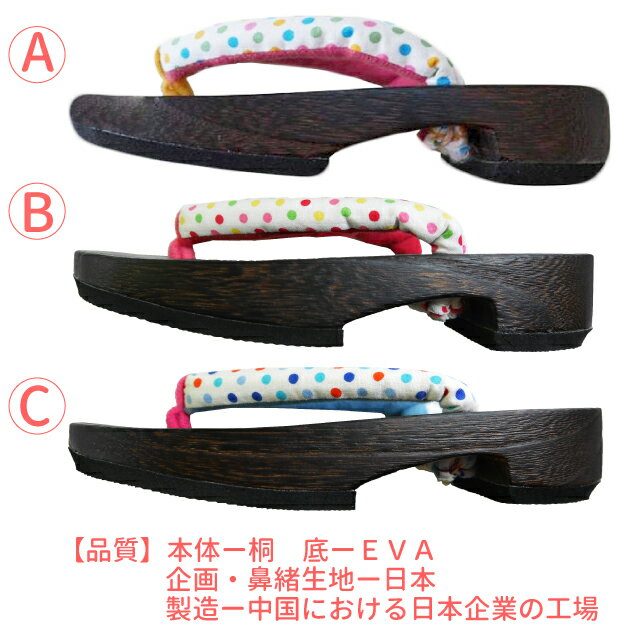 新作子供下駄 全長16.5(適応15.0〜16.5cm程度)■浴衣・甚平に本格派下駄★水玉模様鼻緒の女の子用子供桐下駄★履きやすい!下駄★選べる3色★子供下駄、女児下駄、女子下駄、げた、ゲタA(KGW048) B(KGW047) C(KGW046)