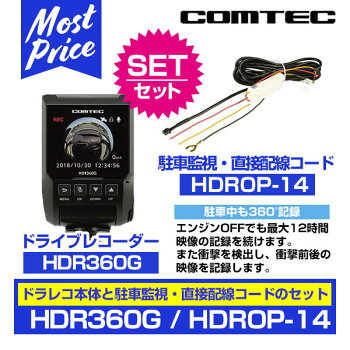 商品名 COMTEC コムテック ドライブレコーダー HDR-360G と 駐車監視・直接配線コード HDROP-14 のセット メーカー品番 HDR360G/HDROP-14 商品説明 コムテックのドライブレコーダー HDR360G と、駐車監視・直接配線コード HDROP-14 のセットです。