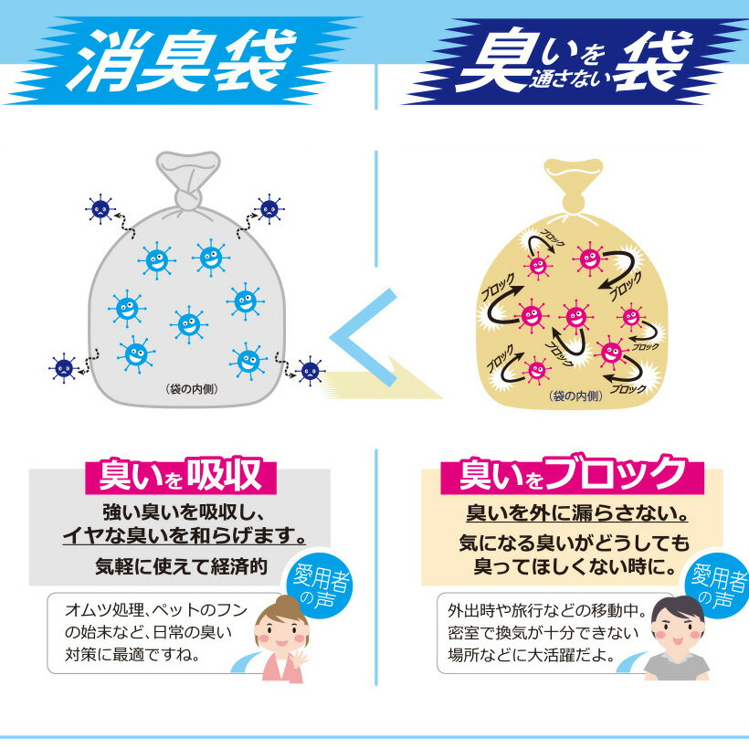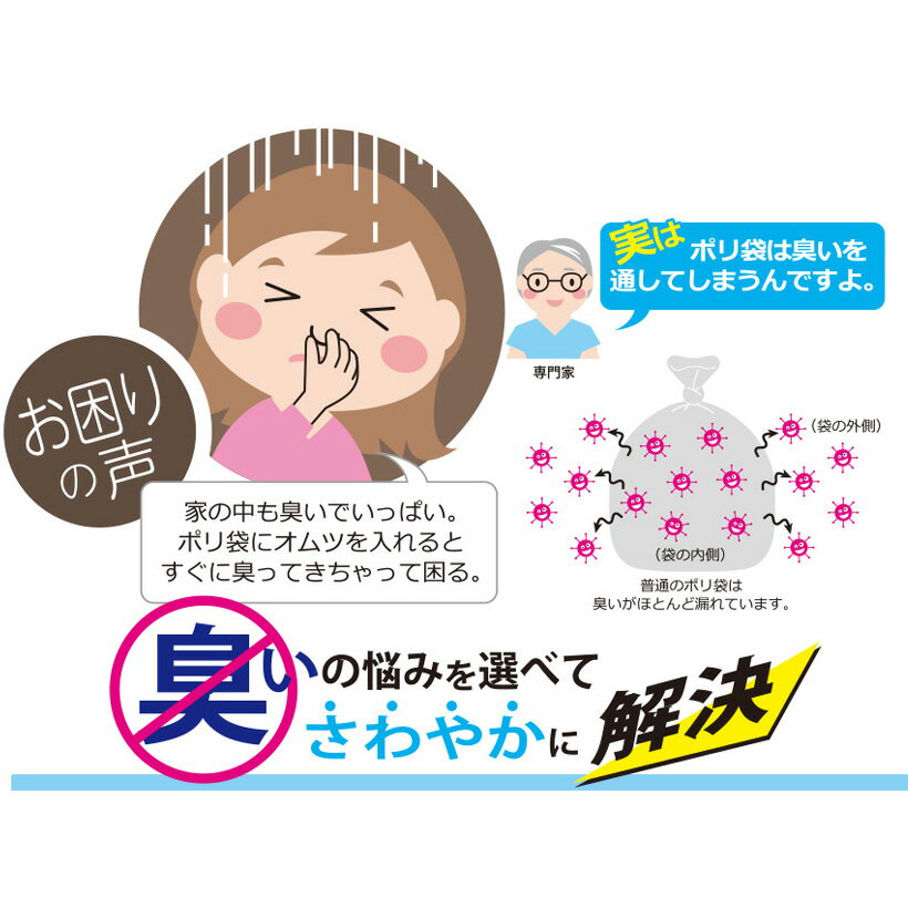 ●強力消臭剤がイヤな臭いをしっかり吸収!臭いを抑えます ●高性能消臭剤配合の消臭ポリ袋。