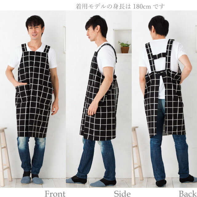グラフチェック柄がおしゃれな、シンプルな形のH型エプロン。