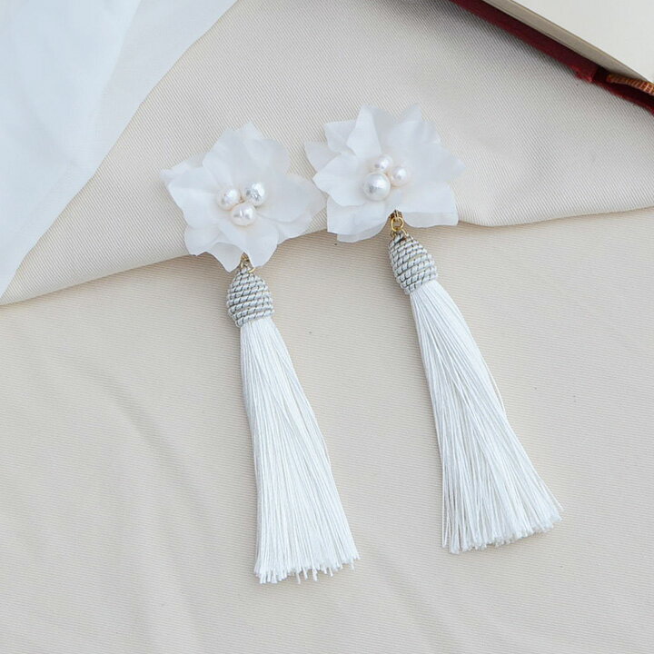素材本絹サテン(日本製),淡水パール,コットンパール,合金サイズTop flour 幅5cm tassel 幅9cm 全体長さ 13cm納期在庫のある商品は1〜2営業日で発送予定です。